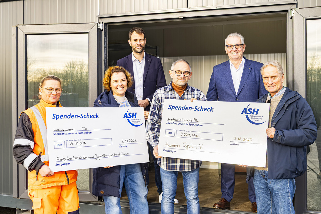 Mit dem Ziel, lokal zu unterstützen, hat der ASH insgesamt eine Spendensumme in Höhe von 4.002,60 Euro an den Ambulanten Kinder- und Jugendhospizdienst Hamm und die Hammer Tafel e. V. übergeben. „In beiden Einrichtungen werden Menschen begleitet, die Unterstützung brauchen. Diese Arbeit ist sicherlich nicht immer einfach. Deshalb ist es uns eine Ehre, dabei zu unterstützen“, sagt Klimadezernent Volker Burgard. Auch ASH-Betriebsleiter Robert Reminghorst ist stolz auf das Ergebnis: „Es ist jedes Jahr wieder schön zu sehen, wie viel Hammer Bürger:innen bereit sind zu geben. Nur so konnten wir auch in diesem Jahr wieder eine so beeindruckende Summe zusammenbringen.“