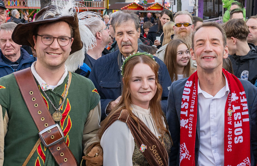 Das Jägerken von Soest, die Soester Bördekönigin sowie die Historische Stadtwache Soest und Repräsentanten der Soester Fehde