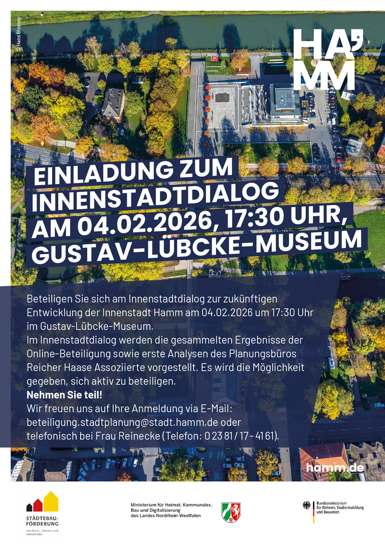 Nach dem vorangegangenen Rahmenplanprozess ist der Planungsraum „Innenstadt 2030“ seit August 2015 ein Programmgebiet im Stadterneuerungsprogramm „Stadtumbau West“ und wird durch Mittel des Bundes und des Landes NRW gefördert. Grundlage für diese Förderung ist das Gesamtkonzept „Perspektive Innenstadt 2030“, ein sogenanntes Integriertes städtebauliches Entwicklungskonzept (ISEK). Dieses wurde zuvor im Juli 2015 vom Rat der Stadt Hamm beschlossen. In diesem Konzept werden die Handlungsschwerpunkte der Innenstadtentwicklung für die nächsten Jahre benannt und dienen der Stadt Hamm als planerische Grundlage.
