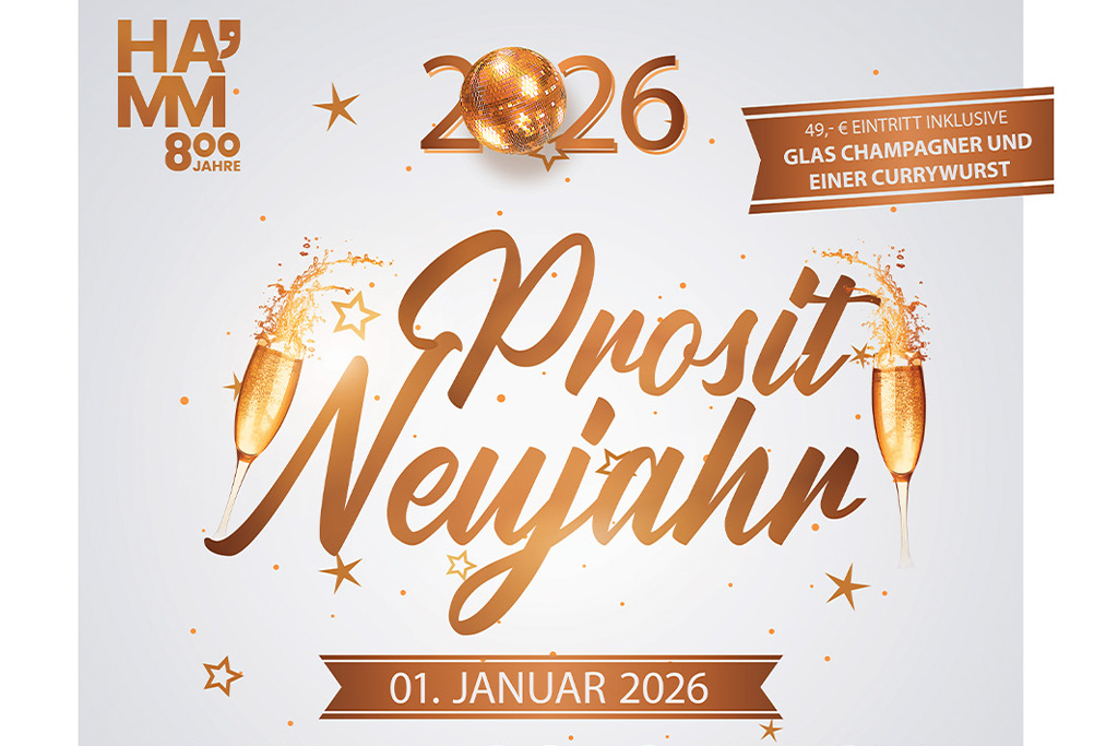 Das erste kulturelle Highlight – und somit der offizielle Start ins Jubiläumsjahr 2026 – wird das Konzert „Prosit Neujahr 2026“ am 1. Januar 2026 um 15:00 Uhr im Kurhaus der Stadt Hamm darstellen. An Weihnachten werden dazu Tickets verlost.