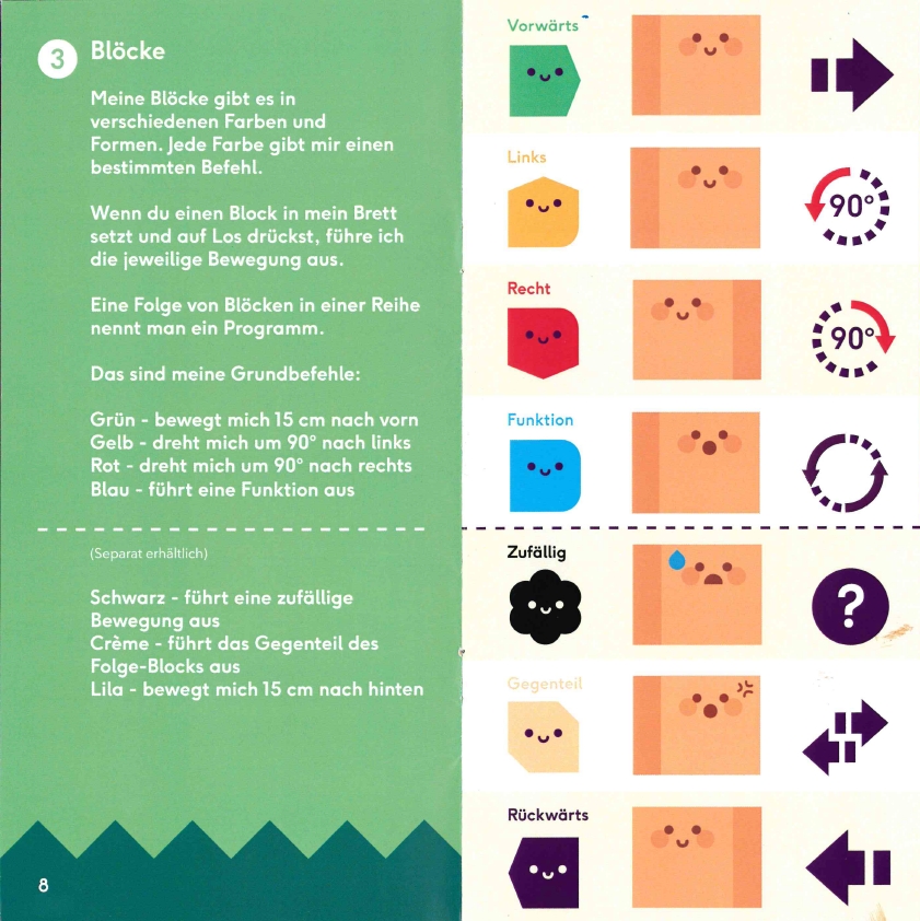 Grundbefehle der verschiedenfarbigen Blöcke:
