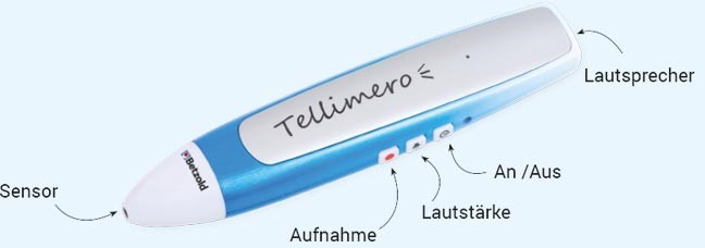Der Tellimero ist ein Audio-Lesestift mit Aufnahmemöglichkeit. Er kann beliebig besprochen werden und fördert das Hörverstehen und den Spracherwerb.