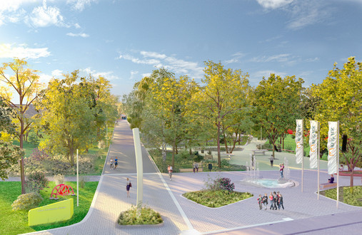 Ausgehend vom Integrierten städtebaulichen Entwicklungskonzept Werries (ISEK) sowie dem 2021 durchgeführten städtebaulichen und freiraumplanerischen Wettbewerb für das Leitprojekt „Grüne Umweltachse“ wird ab Juni 2025 der erste Bauabschnitt realisiert: